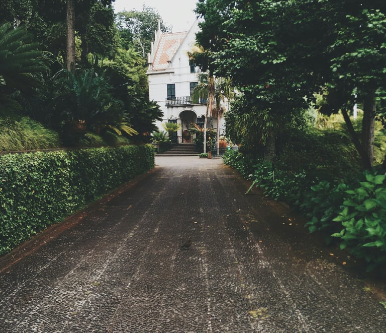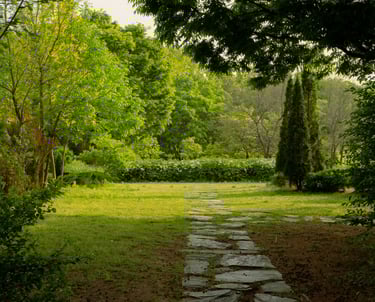 Serene backyard with lush plants and a cozy seating area perfect for relaxing evenings.